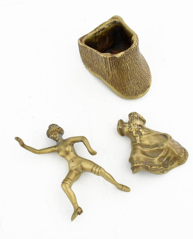 3 db-os pajzán réz tárgy szett, jó állapotban, m: 6,5 cm