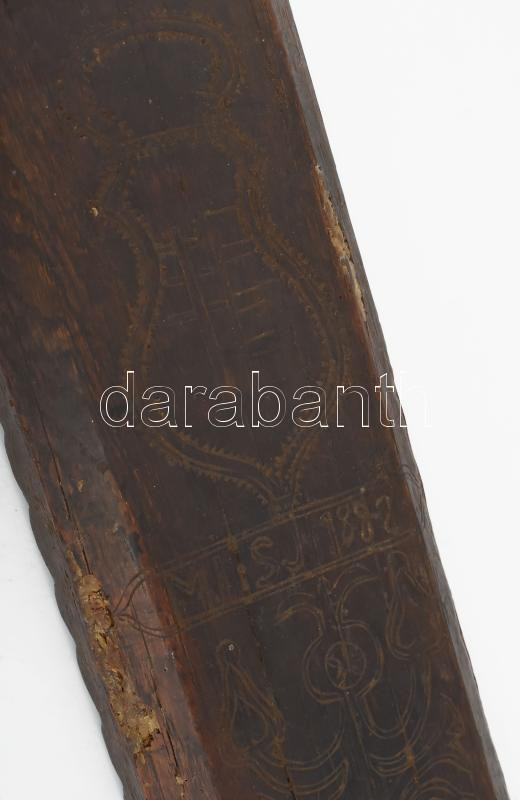 Antik mángorló 1892 magyar címeres Misj feliratos. Faragott fa, kisebb sérülésekkel 68 cm