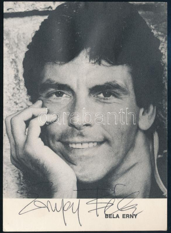Ernyey Béla (1942) színész, énekes aláírása autogramkártyán, Erny Béla...