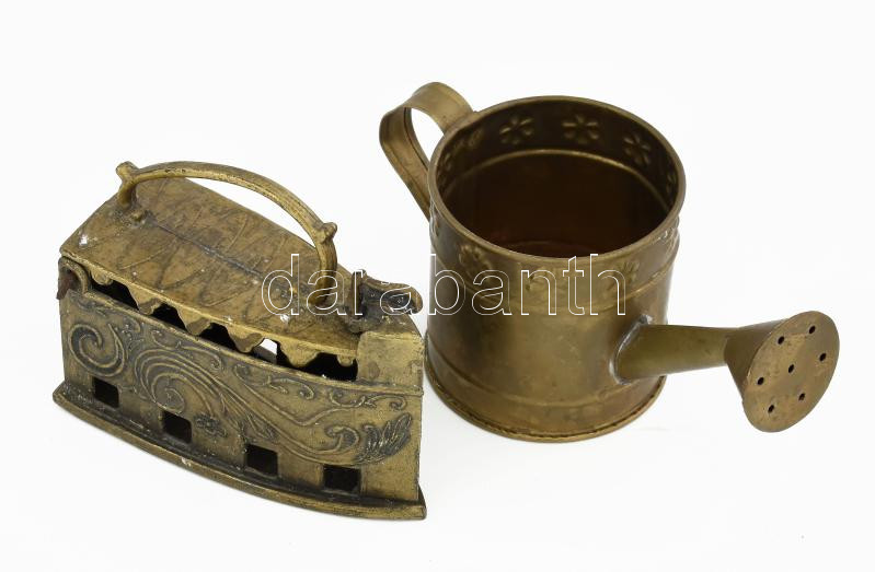 2 darab réz asztaldísz, kanna és vasaló, h: 10-14 cm