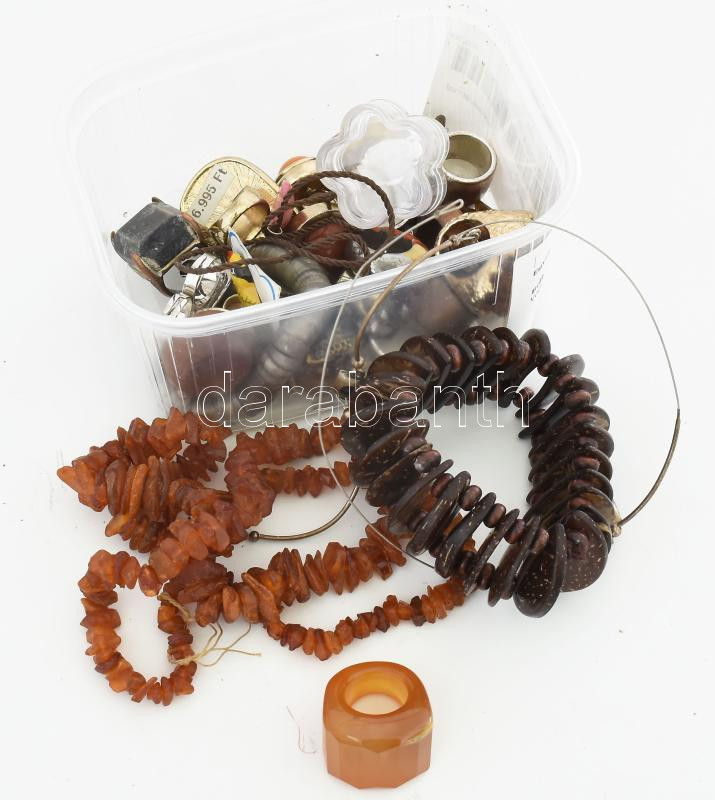 Vegyes bizsu ékszer tétel, benne valódi borostyánnal