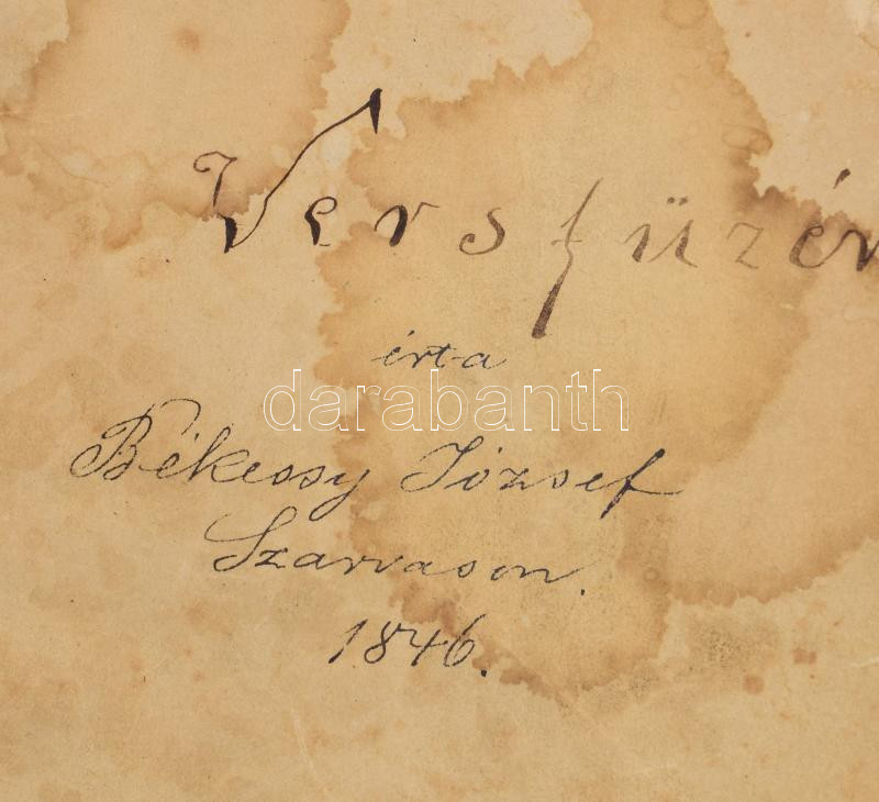 1846 Versfüzér, írta Békessy József Szarvason, kézirat, 64 beírt oldal... https://www.darabanth.com/en/476-Online-auction/476.0/Art-and-other-collectibles/Historical-documents-manuscripts~500022/1846-Versfuzer-irta-Bekessy-Jozsef-Szarvason-kezirat-64-beirt-oldal-eloszoval-es~II3233853