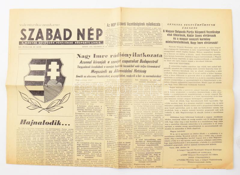 1956 Szabad Nép, a Magyar Dolgozók Pártjának központi lapja 1956. októ... https://www.darabanth.com/en/476-Online-auction/476.0/Art-and-other-collectibles/Printed-Materials~1500015/1956-Szabad-Nep-a-Magyar-Dolgozok-Partjanak-kozponti-lapja-1956-oktober-29-i-szama-a-cimlapon-~II3240061
