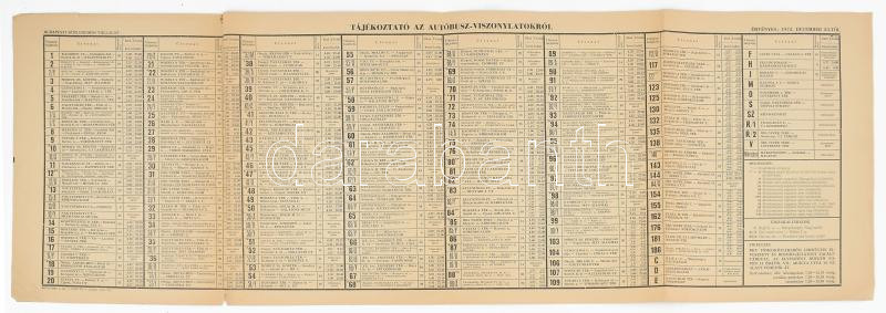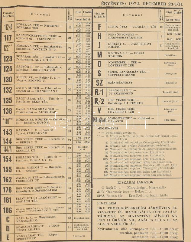 1972 Tájékoztató az autóbusz-viszonylatokról, BKV buszjáratok menetren...
