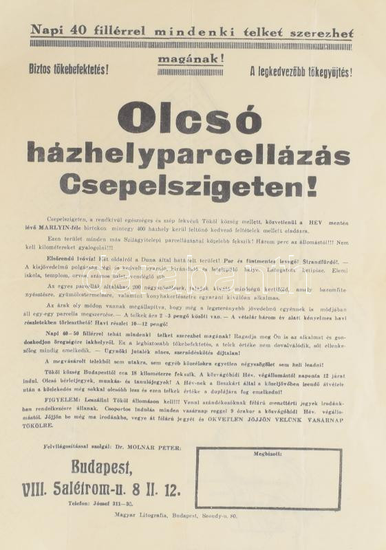 https://www.darabanth.com/en/476-Online-auction/476.0/Art-and-other-collectibles/Printed-Materials~1500015/cca-1930-Olcso-hazhelyparcellazas-Csepelszigeten-hirdetmeny-hajtott-szakadassal-~II3238156