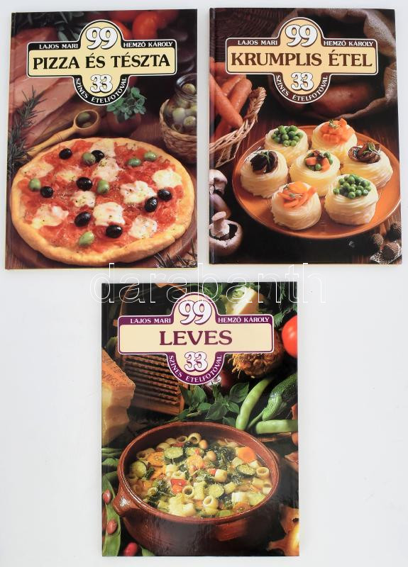 99 p... https://www.darabanth.com/en/476-Online-auction/476.0/Books/Books-Gastronomy-and-Gardening~1500031/Lajos-Mari-Hemzo-Karoly-99-leves-33-szines-etelfotoval-99-pizza-es-teszta-33-szines~II3241549