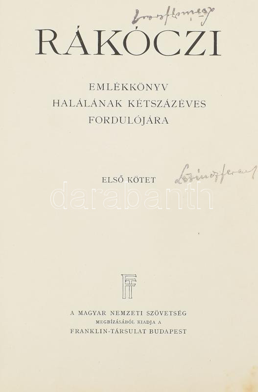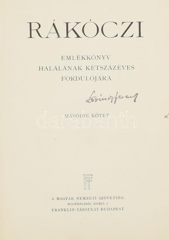 Rákóczi emlékkönyv halálának kétszázéves fordulójára. I-II. kötet. Sze... https://www.darabanth.com/en/476-Online-auction/476.0/Books/Books-History~1500028/Rakoczi-emlekkonyv-halalanak-ketszazeves-fordulojara-I-II-kotet-Szerk-Lukinich-Imre-Grof~II3236337