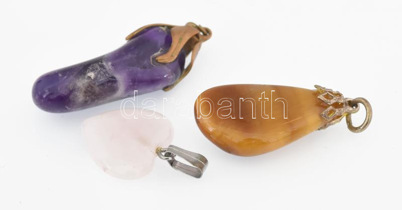 3 db drágakő medál, rózsakvarc, ametiszt, macskaszem 4 cm-ig
