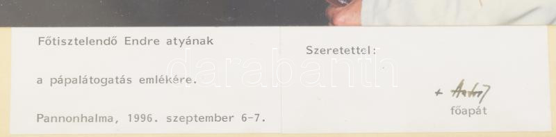 1991 II. János Pál pápa és Várszegi Asztrik pannonhalmi főapát, eredeti fotó, üvegezett keretben 24x20 cm