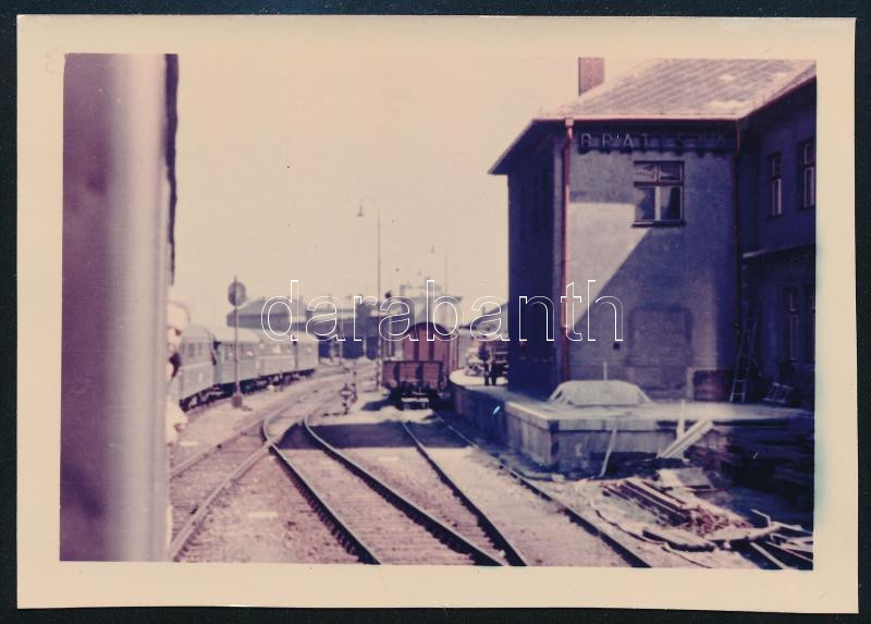 cca 1940-1950 Pozsonyi vasúti pályaudvart elhagyva, színes fotó,
