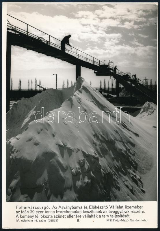 cca 1960-1965 Fehérvárcsurgó, az Ásványbánya és Előkészítő Vállalat üzemében készült kvarchomok, MTI Fotó, Mező Sándor felvétele, 27x18,5 cm