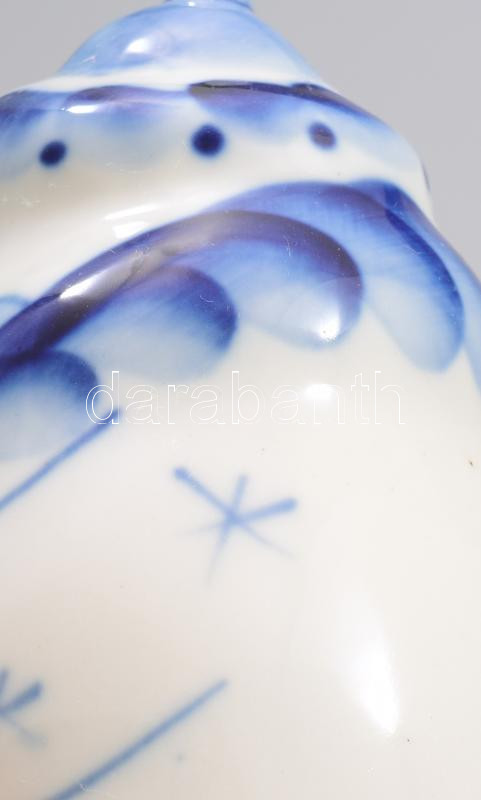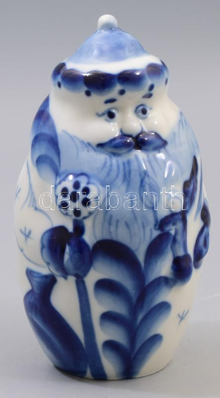 Gzhel orosz porcelán öregapó, jelzett, hibátlan, m: 14,5 cm