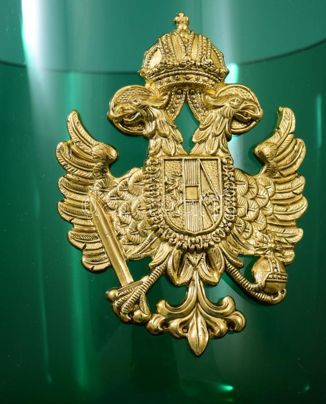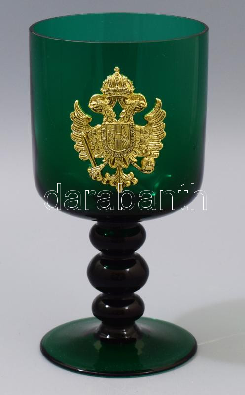 Címer rátétes zöld üveg kehely, m: 18,5 cm