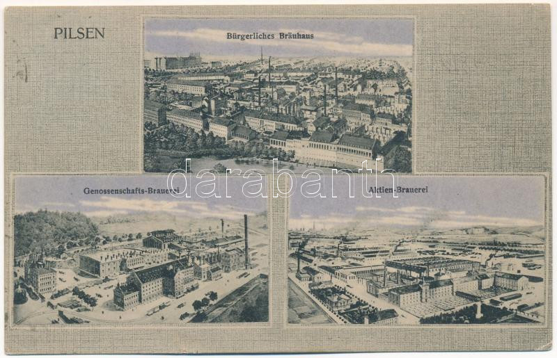 Plzen, Pilsen; Bürgerliches Bräuhaus, Genossenschafts-Brauerei, Aktien-Brauerei / brewery, beer factory (ázott / wet damage)