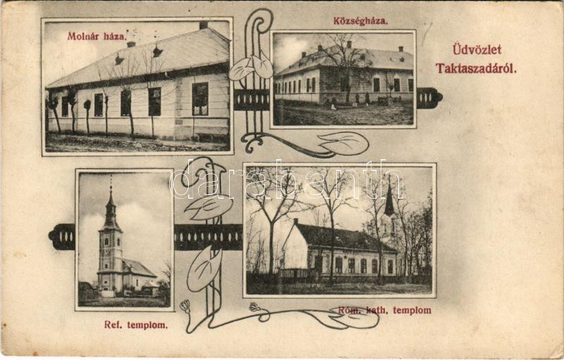1913 Taktaszada, Molnár József háza, Községháza, Református és római k...