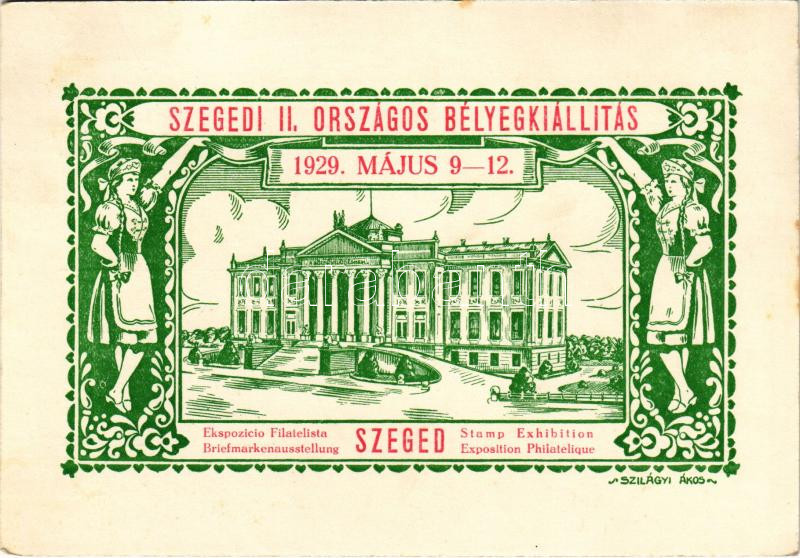 1929 Szeged, Szegedi II. Országos Bélyegkiállítás 1929. május 9-12. Art Nouveau, magyar folklór s: Szilágyi Ákos + So. Stpl.