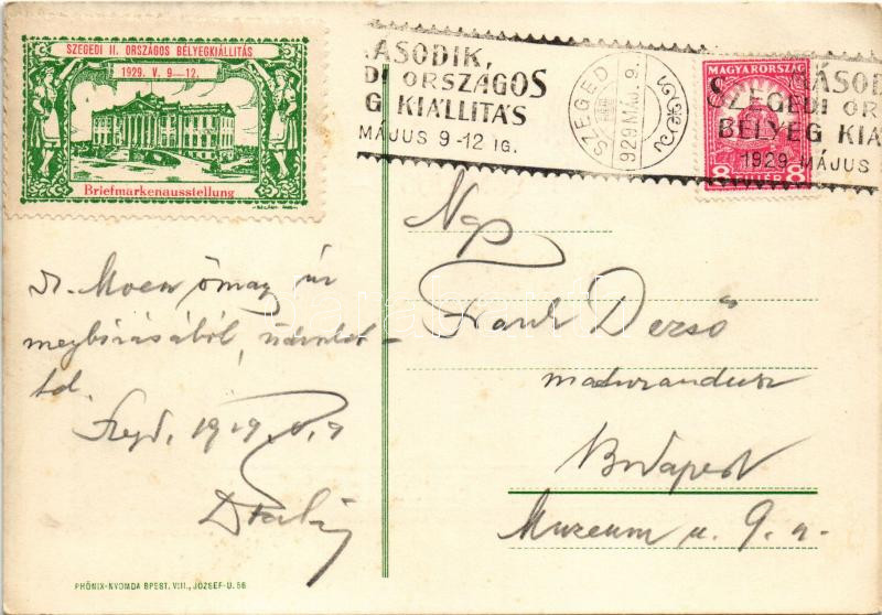 1929 Szeged, Szegedi II. Országos Bélyegkiállítás 1929. május 9-12. Ar...