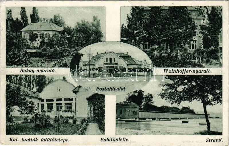 1932 Balatonlelle, Bakay nyaraló, Wolnhoffer nyaraló, Katolikus tanítók üdülőtelepe, strand, postahivatal (EK)