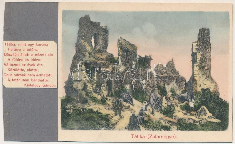 Zalaszántó, Tátika várrom, Kisfaludy Sándor verse. Lapra ragasztott ké...