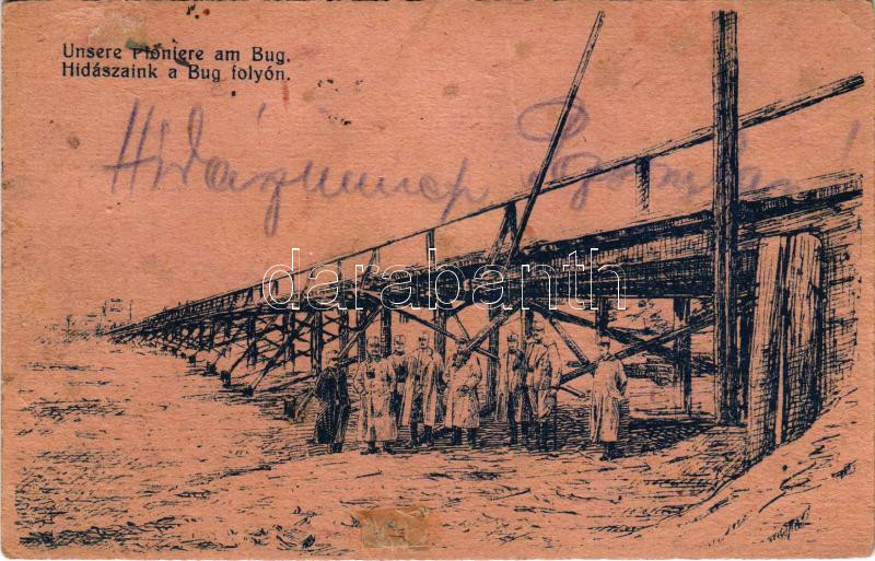 1918 Unsere Pioniere am Bug. Kriegsinvalidenfonds für Pioniere (Pozsony) Feldpostkarte / Hidászaink a Bug folyón. Tábori Postai Levelezőlap - Hidász rokkantak, özvegyek és árvák javára. Carl Angelmayer / WWI Austro-Hungarian K.u.K. military field postcard, pioneers + "POZSONY HIDÁSZNAP 1918. AUG. 18." So. Stpl. (EB)