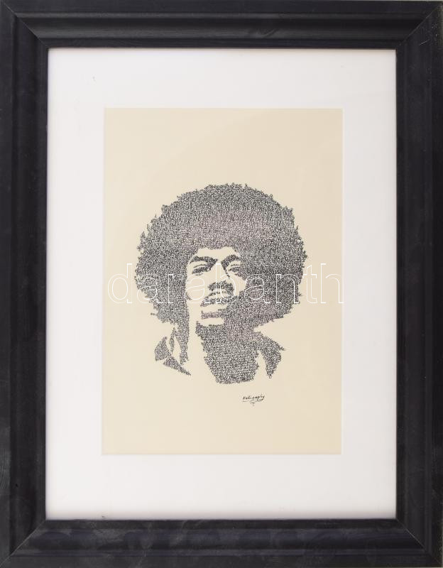 Fahad Alyu: Jimmy Hendricks. Tus, papír. jelzett 30x40 cm Üvegezett keretben, hátoldalt tanusítvánnyal