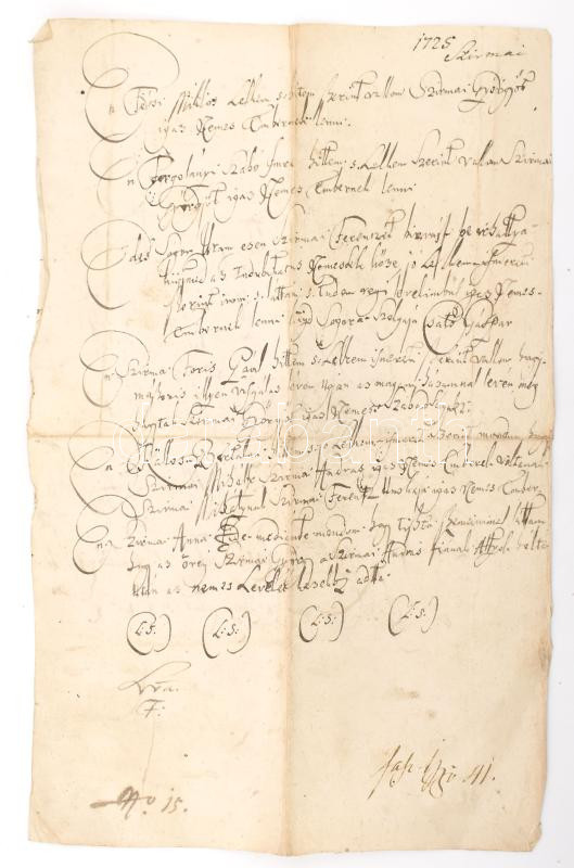 Description: 1725 Forgolány, Ugocsa vármegye, bizonyságlevél Téri Miklós, Forgolányi Szabó Imre, Csató Gáspár, Szirmai Pais Pál, Kallos Bertalan, Szirmai Anna által, hogy Szirmai Ferenc nemes ember