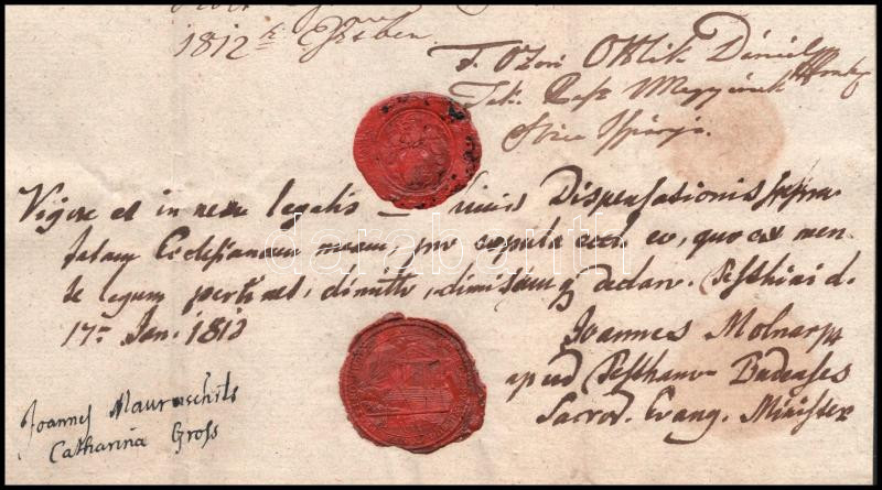 1812 Felső-Ozorai és Kochanóczi Ottlik Dániel (?-1825) Pest vármegye ispánja és követe autográf aláírással és pecséttel ellátott igazolása