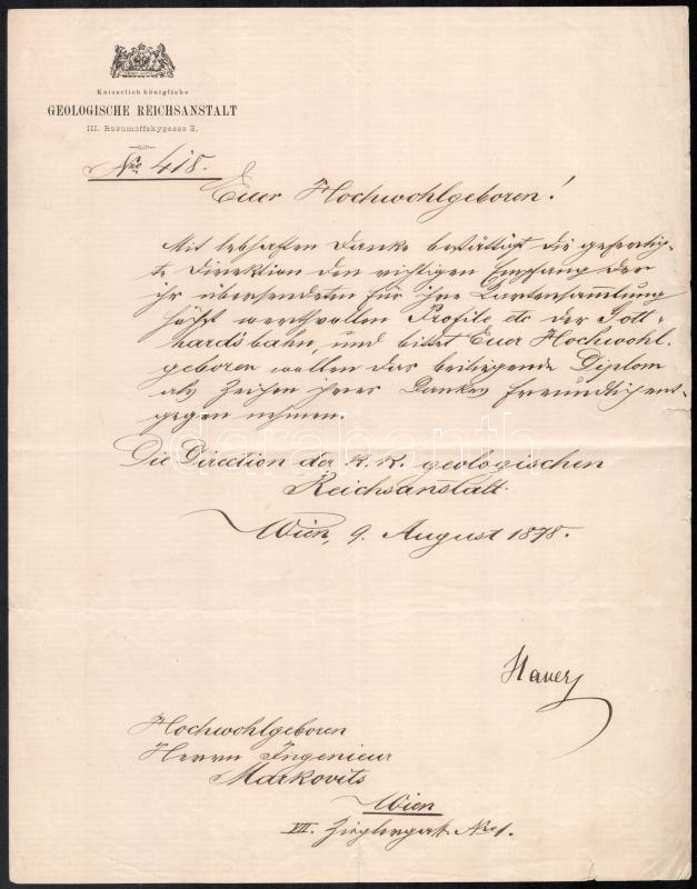 https://www.darabanth.com/en/477-Online-auction/477.0/Art-and-other-collectibles/Documents~1000023/1878-Kaiserliche-Konigliche-Geologische-Reichsanstalt-kinevezesi-okmanya-Markovits-Miklos-mernC3~II3250067