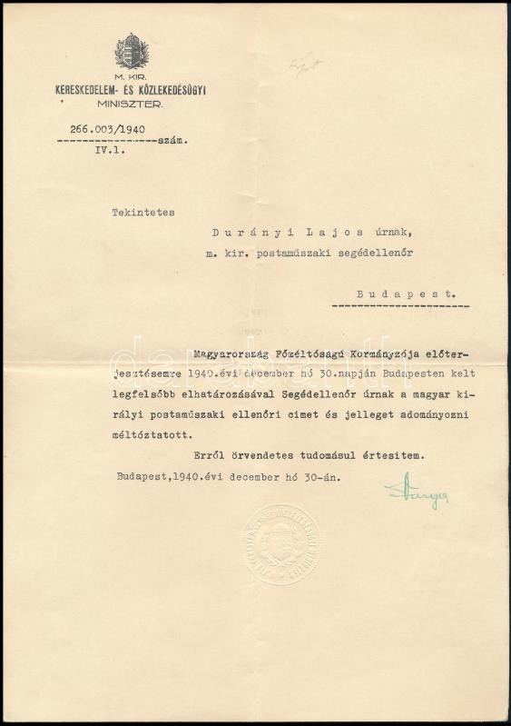 1941 Varga József (1891-1956) kereskedelem- és közlekedésügyi, Corvin-... https://www.darabanth.com/en/477-Online-auction/477.0/Art-and-other-collectibles/Documents~1000023/1941-Varga-Jozsef-1891-1956-kereskedelem-es-kozlekedesugyi-Corvin-koszoruval-es-Kossuth-~II3229037