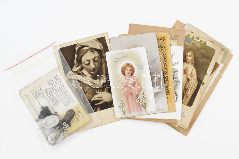 Vallási tétel: kis kegytárgyak, medálok, szentképek, összesen kb. 30 d...