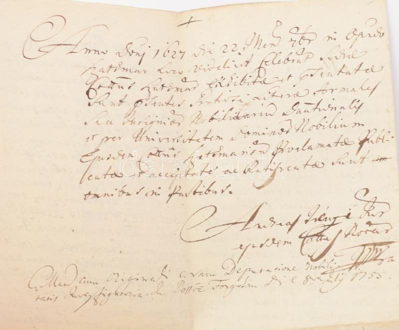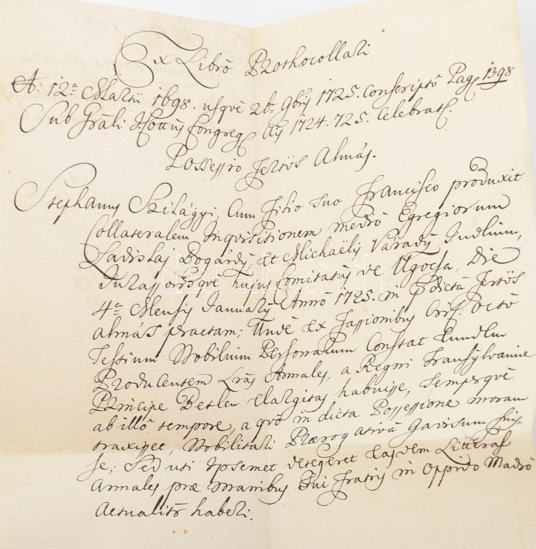 1627 Szatmár Bethlen Gábor erdélyi fejedelem által 1619-ben Gyulafehérváron kiadott privilegiális oklevélrÅ‘l készült másolat. a váradi születésű Szilányi Miklós alkapitány megnemesÃtése hűséges szolgálataiért, cÃmeradománnyal. Péchy Simon kancellár és Bölöny Gáspár hitelesÃtÅ‘. Felhasználták 1755-ben, hozzá a korabeli jegyzÅ‘könyvi kivonat
