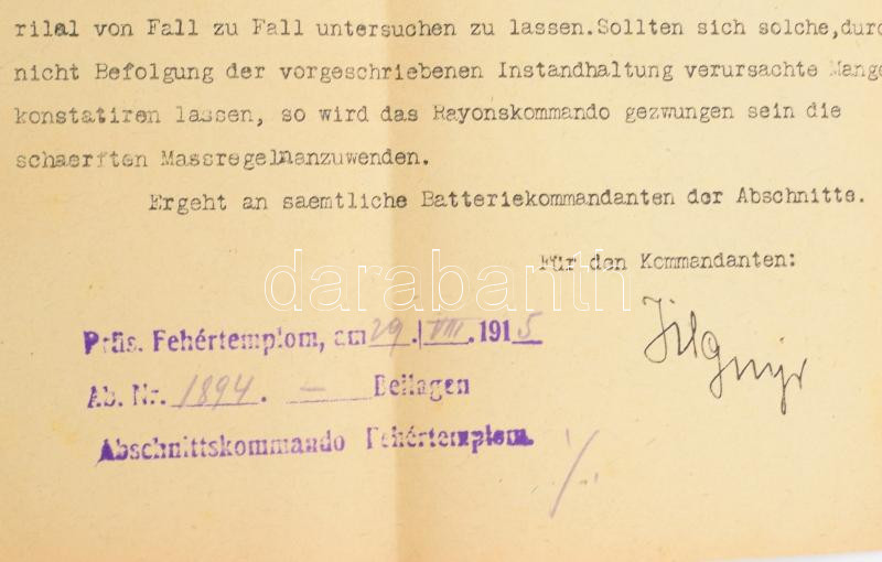 https://www.darabanth.com/en/477-Online-auction/477.0/Art-and-other-collectibles/Military~2000009/1915-Temesvar-kuk-Rayonskommando-Banat-hadianyag-vizsgalati-jegyzokonyv-alakulati-pecsettel~II3254394