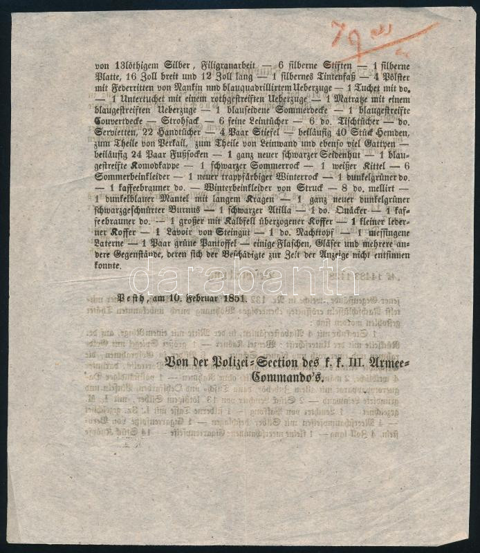 1851 Rendőrségi nyomtatvány, amelyben a Soroksári út 132. szám alatti ... https://www.darabanth.com/en/477-Online-auction/477.0/Art-and-other-collectibles/Printed-Materials~2000013/1851-Rendorsegi-nyomtatvany-amelyben-a-Soroksari-ut-132-szam-alatti-fotomuhelybol-ellopot~II3251506