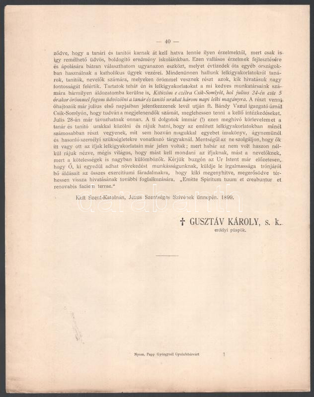 1899 Szentkatolna, gróf székhelyi Majláth Gusztáv Károly erdélyi püspök körlevele, 4 p.