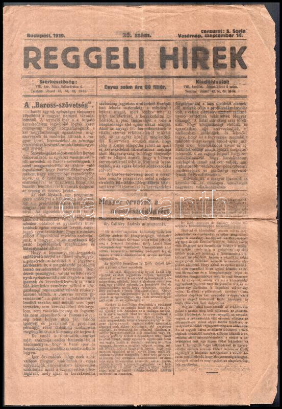 https://www.darabanth.com/en/477-Online-auction/477.0/Art-and-other-collectibles/Printed-Materials~2000013/1919-szeptember-14-A-Reggeli-Hirek-c-ujsag-25-szama-roman-cenzuraval~II3245779