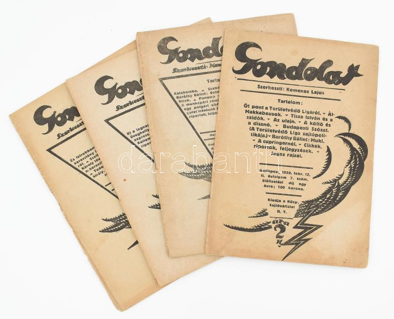 1920 Gondolat II. évf. 7., 14., 15., 16. számai (4 db). Szerk.: Kemene... https://www.darabanth.com/en/477-Online-auction/477.0/Art-and-other-collectibles/Printed-Materials~2000013/1920-Gondolat-II-evf-7-14-15-16-szamai-4-db-Szerk-Kemenes-Lajos-Kiadja-a-Kozponti-~II3242329