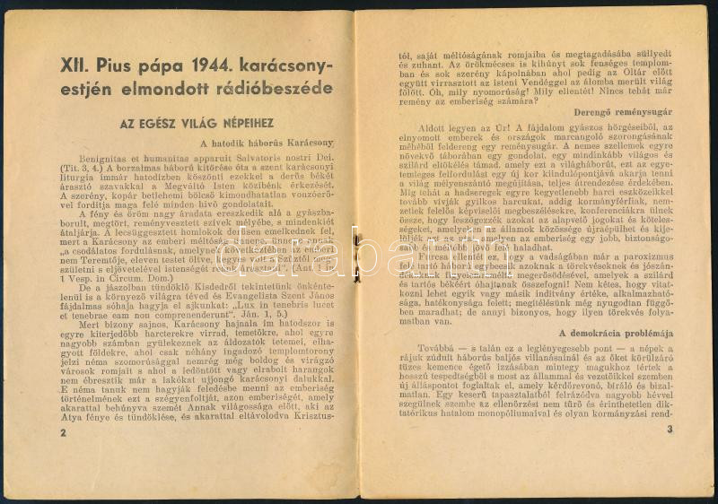 1944 XII. Pius pápa 1944 karácsony estjén elmondott rádióbeszéde, 16p