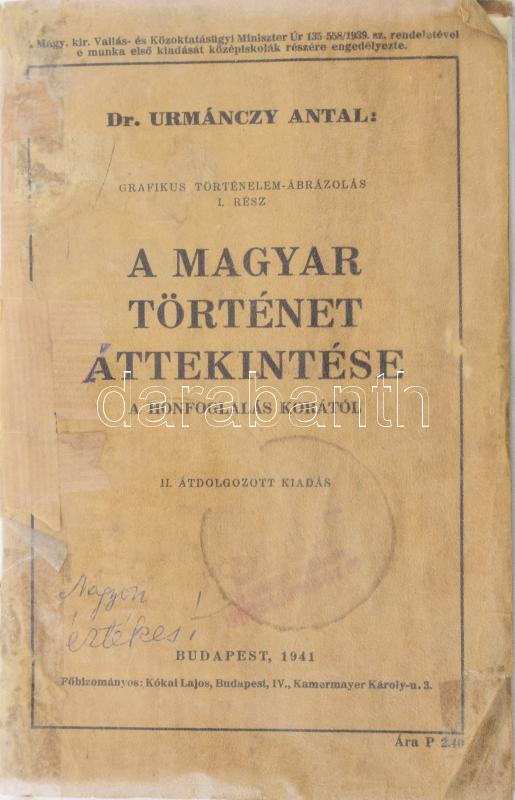 Urmánczy Antal: A magyar történet áttekintése a honfoglalás korától Bp... https://www.darabanth.com/en/477-Online-auction/477.0/Art-and-other-collectibles/Printed-Materials~2000013/Urmanczy-Antal-A-magyar-tortenet-attekintese-a-honfoglalas-koratol-Bp-1941-Kokai-1-tab~II3242937