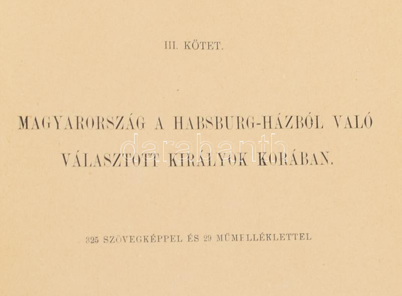 Szalay József - Baróti Lajos: A magyar nemzet története. I-IV. kötet. [Teljes]. I. köt.: Magyarország az Árpádház kihaltáig. II. köt.: Magyarország a vegyes házakból származott királyok korában. III. köt: Magyarország a Habsburg-házból való választott királyok korában. IV. köt.: Magyarország a Habsburg-házból s a Habsburg-Lotharingiai házból származott örökös királyok korában. Bp., [1895-1898], Lampel Róbert (Wodianer F. és Fiai). Rendkívül gazdag szövegközti és egészoldalas képanyaggal, térképekkel, kihajtható mellékletekkel. Kiadói aranyozott egészvászon-kötés, változó állapotban, sérülésekkel, az I. kötet hiányzó gerinccel.