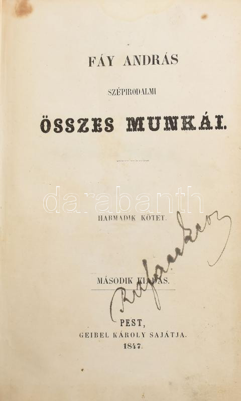 Fáy András szépirodalmi összes munkái. III köt.: A Bélteky-ház. Tanreg... https://www.darabanth.com/en/477-Online-auction/477.0/Books/Books-Other-rarities~2000020/Fay-Andras-szepirodalmi-osszes-munkai-III-kot-A-Belteky-haz-Tanregeny-I-kotet-Pe~II3249423