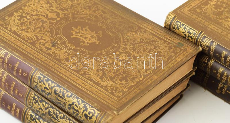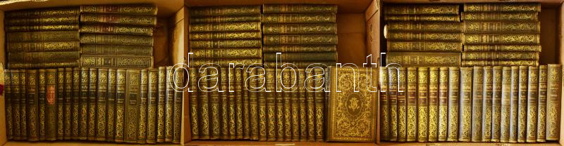 Jókai Mór összes művei 1-100. köt. Nemzeti kiadás. Teljes! Bp., 1898-1905, Révai. Kiadói dúsan aranyozott egészvászon-kötés, változó állapotban, kopott borÃtókkal, közte néhány sérült gerinccel is.
