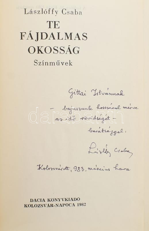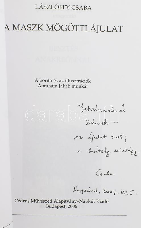 https://www.darabanth.com/en/477-Online-auction/477.0/Books/Books-Other-rarities~2000020/Laszloffy-Csaba-Te-fajdalmas-okossag-plus-A-maszk-mogotti-ajulat-DEDIKALT-19822006-Kiadoi~II3243697