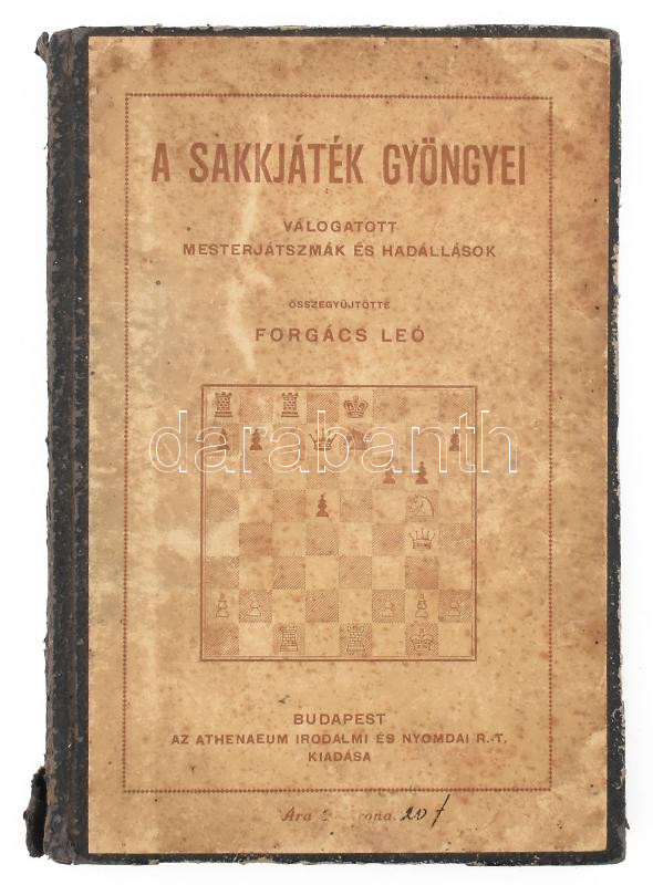 A sakkjáték gyöngyei. Válogatott mesterjátszmák és hadállások. Összegyűjtötte: Forgács Leó. Bp., 1910, Athenaeum. Félbőr kötés, viseltes állapotban.
