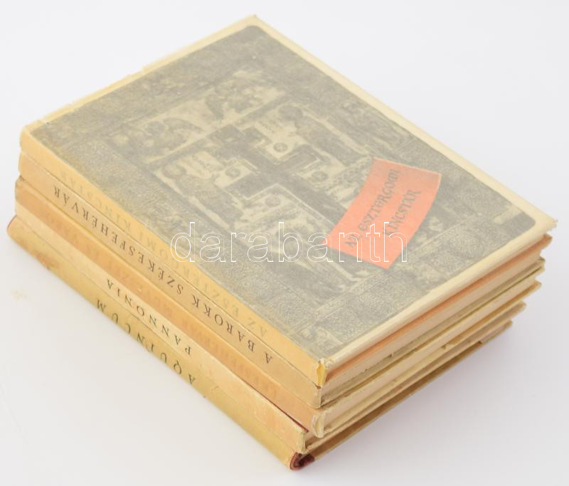 4 db officina könyv: Aquincum, Pannónia, Székesfehérvár: művészet és város, A barokk székesfehérvár, Az Esztergomi kincstár. Bp., 1930-1940 Kiadói papír és félvászon kötésben, jó állapotban