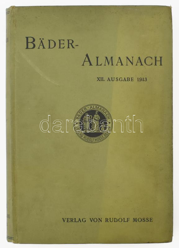 Bäder-Almanach. Mitteilungen der Bäder, Luftkurorte und Heilanstalten in Deutschland, Österreich-Ungarn, der Schweiz und den angrenzenden Gebieten für Ärzte und Heilbedürftige. Berlin, 1913, Rudolf Mosse, 661 p. Német nyelven. Kiadói egészvászon-kötés, kissé koszos borítóval, Tóth Lajos államtitkár (1856-1926) tulajdonosi bélyegzőjével.
