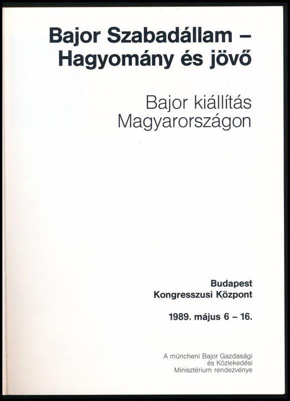 Günter Albrecht - Peter Nickl: Bajor Szabadállam. Hagyomány és jövő. Bajor kiállítás Magyarországon. München, 1989, Bajor Gazdasági és Közlekedési Minisztérium. Kiadói papírkötés.