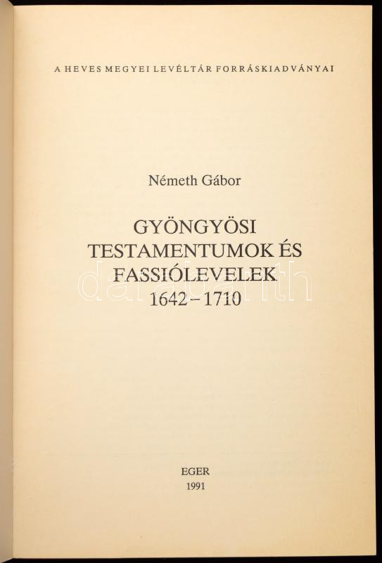 Németh Gábor: Gyöngyösi testamentumok és fassiólevelek 1642-1710. Heve... https://www.darabanth.com/en/477-Online-auction/477.0/Books/Books-Travelling-Local-History~2000016/Nemeth-Gabor-Gyongyosi-testamentumok-es-fassiolevelek-1642-1710-Heves-megyei-leveltar-forr~II3250662