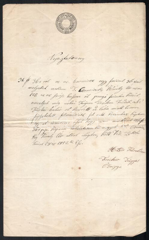 https://www.darabanth.com/en/477-Online-auction/477.0/Hungarian-philately-and-postal-history/Document-Stamps~1000022/1852-Nyugtatvany-5kr-benyomott-szignettaval~II3253535