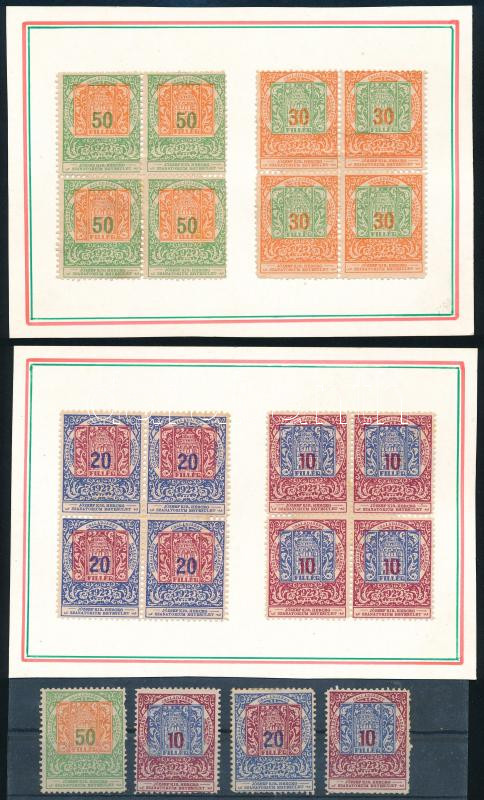 1927 József királyi herceg szanatórium egyesületi segélybélyeg 4 db négyestömb + 4 db bélyeg