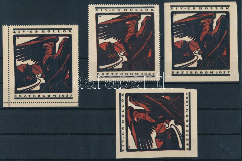 1927 XIV-es hollók Esztergom 2 db fogazott és 2 db vágott levélzáró